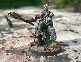 The conversion was pretty easy with an exchange of the back pack to a skull version from the veterans box. The chainsword and forearm were removed and replaced with a cool looking power club and a winged skull also from the veterans box to create a unique Crozuis Arcanum.